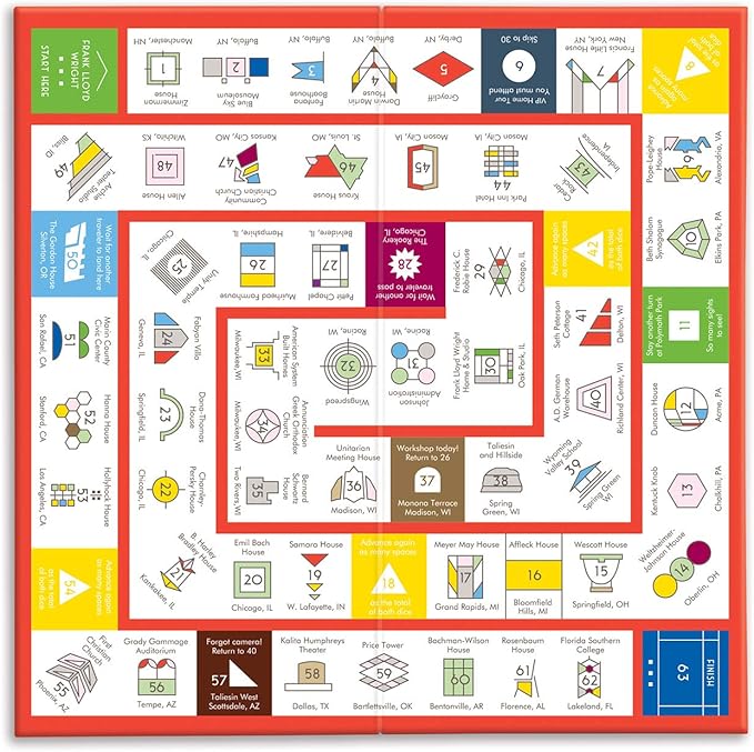 • LUDO AND RACING GAME – Enjoy game night with your family and friends with the Frank Lloyd Wright 2-in-1 Game Set This portable game set includes both Ludo and a special racing game, Wright Around the USA – both are fun for the whole family