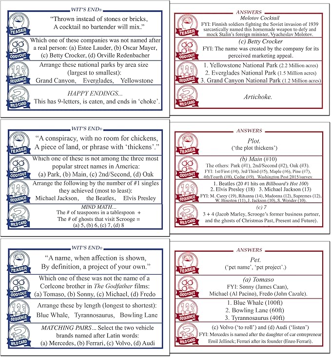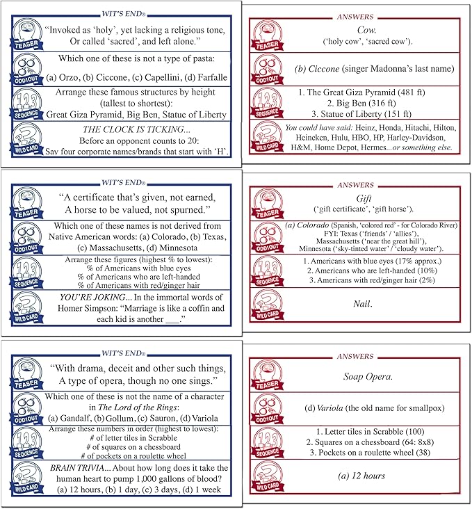 Wit's End — A Smart, Mind-Bending Trivia & Brain Teaser Game That Will Challenge Your Wits & Knowledge — Adult & Family Night Fun