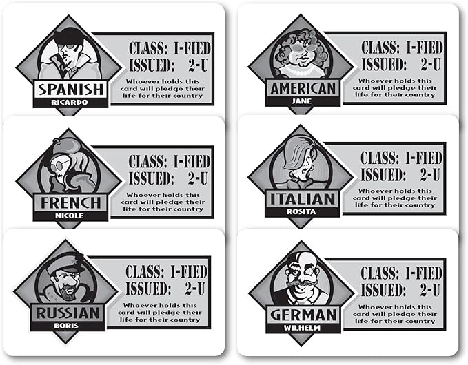 • FAMILY SPY ADVENTURE GAME | Assume your secret Identity and use your wit to unmask and eliminate the enemy spies. 2-6 Players | 30 to 45 Minute Play Time | Ages 8 to Adult | National Award Winner