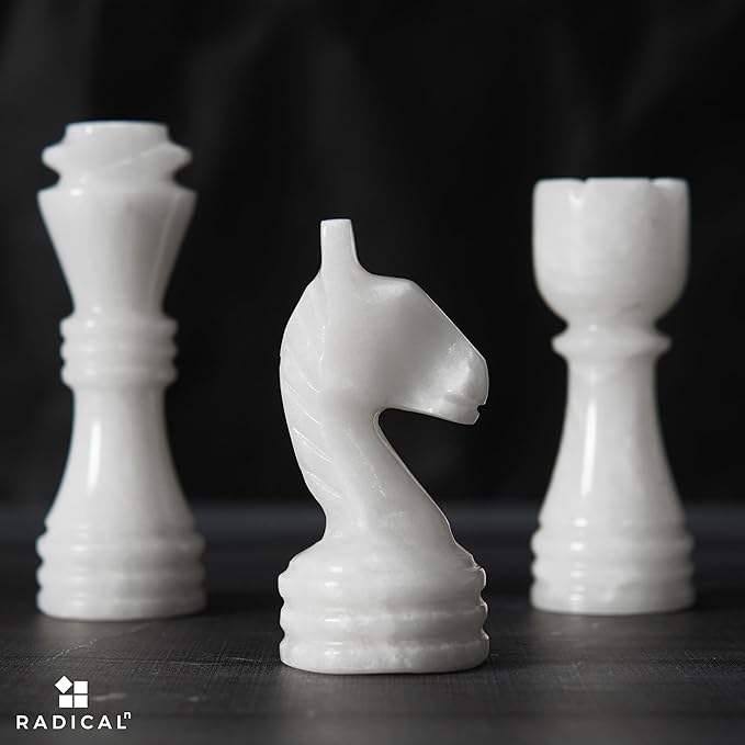 Radicaln Marble Chess Set 12 Inches White and Black Handmade Chess Sets for Games for Adults - 1 Chess Board & 32 Chess Pieces 2 Player Games - Travel Chess Board Game