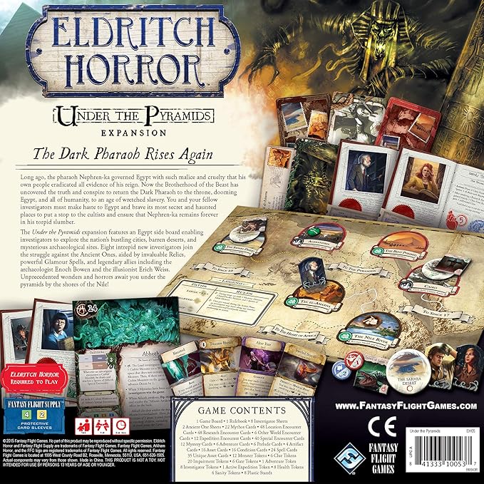 Eldritch Horror Under the Pyramids Board Game EXPANSION | Mystery Game | Cooperative Board Game for Adults and Family | Ages 14+ | 1-8 Players | Avg. Playtime 2-4 Hours | Made by Fantasy Flight Games