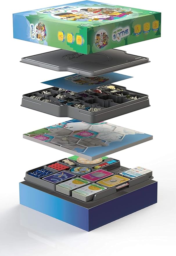 • FAMILY GAME: My Little Scythe is a competitive, family-friendly game in which each player controls 2 animal miniatures embarking upon an adventure in the Kingdom of Pomme.