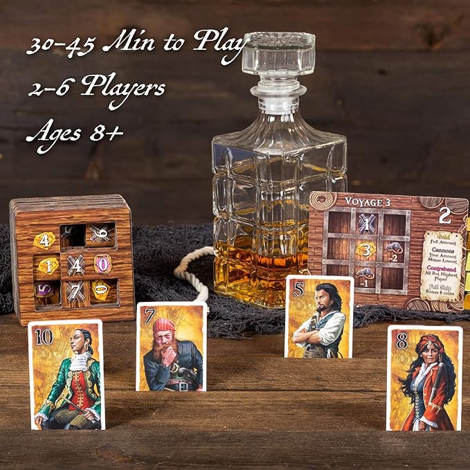 • GAMEPLAY: As a savvy captain, you must skillfully use your crew to fill your ship's hold with the best combination of treasure, cannons, and perhaps some risky - but lucrative - contraband.