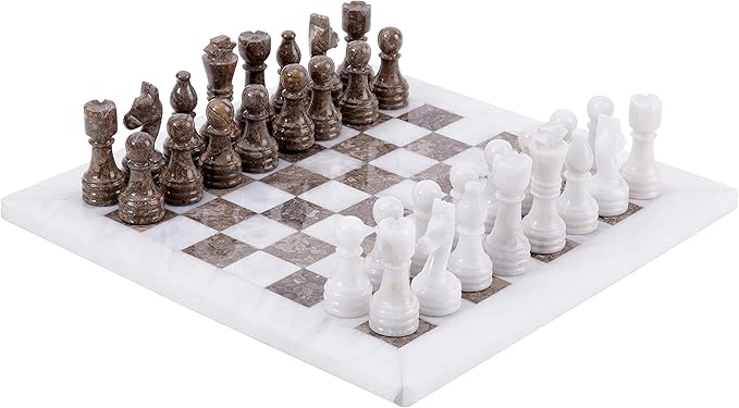 Radicaln Marble Chess Set 12 Inches White and Grey Oceanic Handmade Board Game Chess Sets for Adults - 2 Player Games for Adults - 1 Chess Board & 32 Chess Pieces - Chess Game