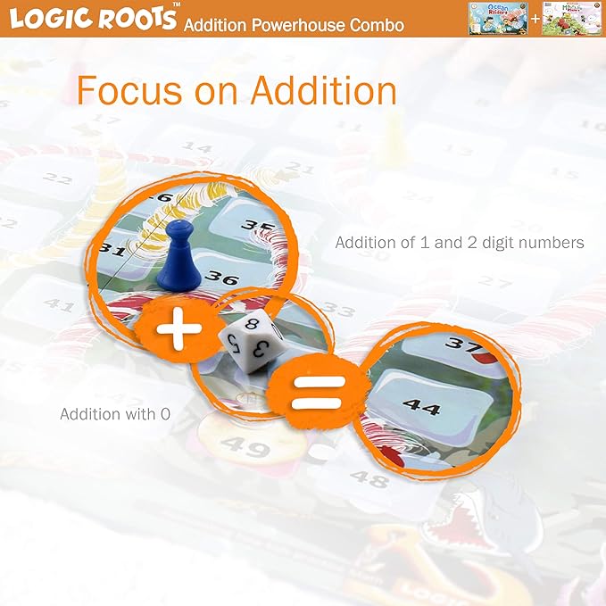 • CAPTIVATING ADDITION COMBO - The pack includes two fun math board games. In Ocean Raiders, kids explore the ocean waters to brave storms and play with sea creatures whereas in Mountain Raiders, kids wander through the mountains to escape the monsters and race to treasure. They ace addition and subtraction facts along the way.