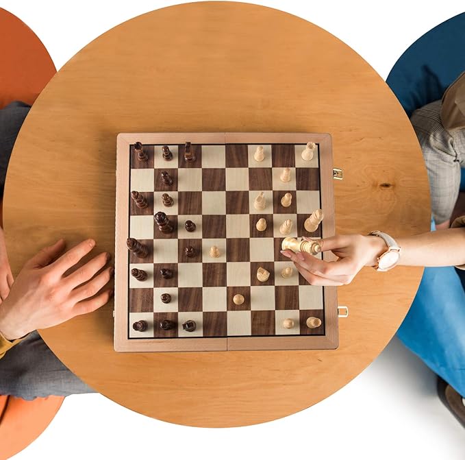• PREMIUM MATERIAL - The magnetic chess set is made of premium wood and coupled with magnetic chess pieces, which ensure no lost pieces while playing outdoors or during travelling, making game more appealing and exciting