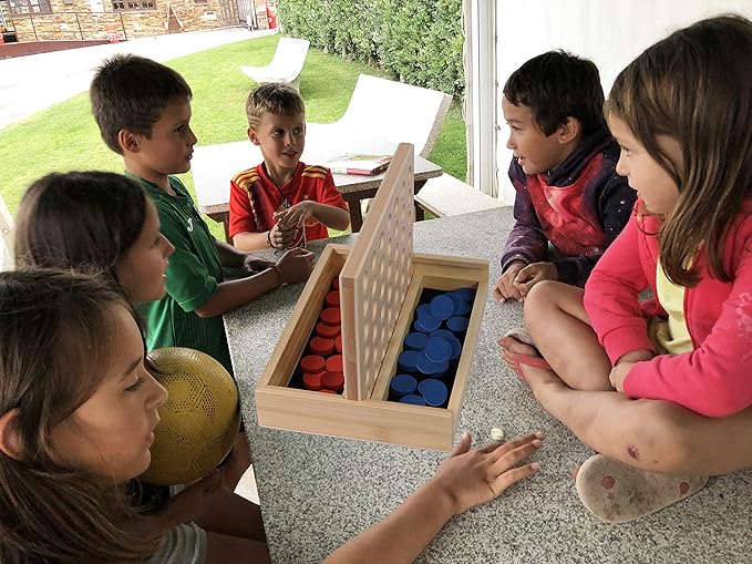 • Quality wooden classic board games: Made with ever-lasting Bamboo box with black valet base finish, alder wood discs & frame. Very good size wooden disc 2.5 X 2.5 X 0.7 cm. Nothing beats the sound of the wooden disc or chips dropping into place to connect (conecta) four same colour discs in a row to win
