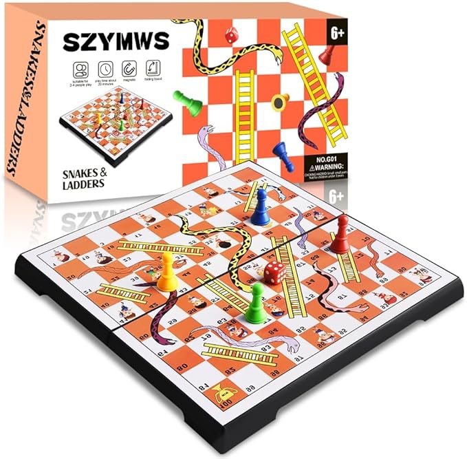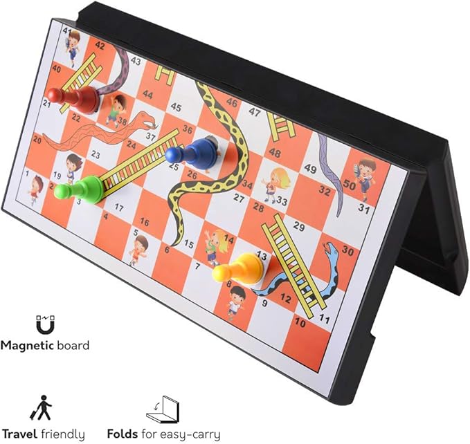 • [ TRAVEL BOARD GAME-STRONG MAGNETIC] - Our strong magnetic Pins keep all your game pieces in place. Even if accidentally bumped, your snakes and ladders board game will stay put.