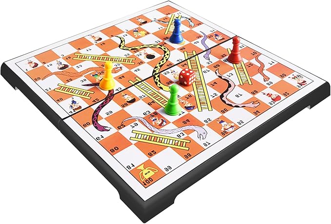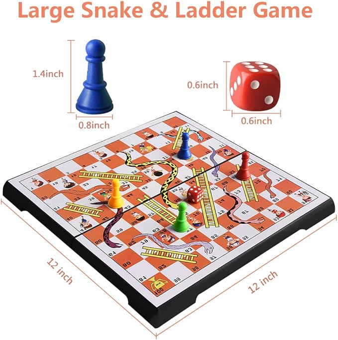 Magnetic Folding Snakes & Ladders Game Set 11.8 inch Portable Family Fun Board Game for All Ages-in Storage(Large Size 30x30cm )