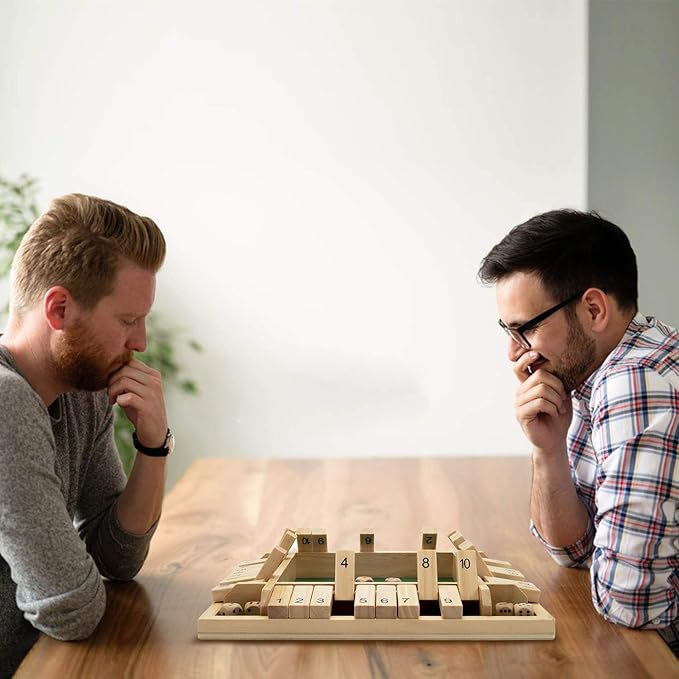 • CLASSIC GAME - The 4-player shut the box dice game consists of 12 dices (including 4 extra ones for back-up purpose) and measures 12 x 12 inches, suitable for 2-4 players of all ages playing simultaneously. It’s one of the classic pub and bar games and great for parties or a day in with friends who like dice games. Not only is Shut The Box great for family time, but it’s a fantastic way for young kids to practice simple math