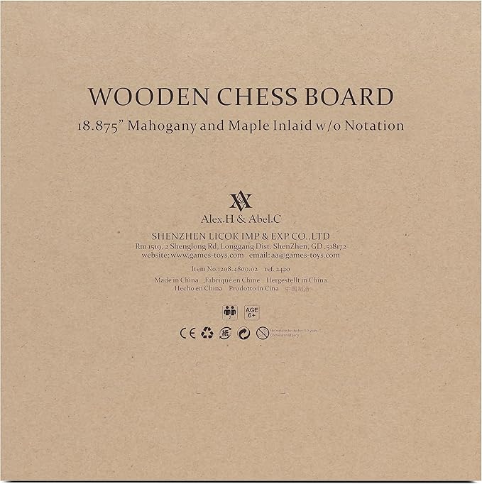 A&A 18.875" Professional Wooden Tournament Chess Board/Mahogany & Maple Inlaid / 2.0" Squares w/o Notation