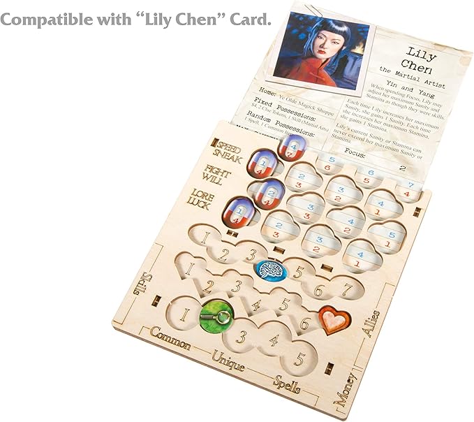 • Easy Organization: Keep your investigator’s stat markers and assets in check with The Broken Token's Arkham Player Board and Investigator's Journal. No more fumbling through clutter during your game!