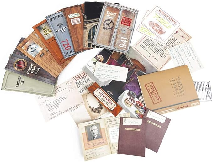 • Set contains 9 mystery envelopes, each represents a different train carriage containing a puzzle and clues, and an instruction booklet.