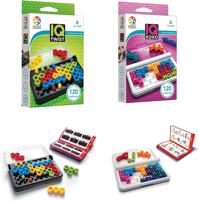 • SmartGames IQ Bundles Color Series: IQ Twist & IQ XOXO 240 Challenges for Ages 6-Adult