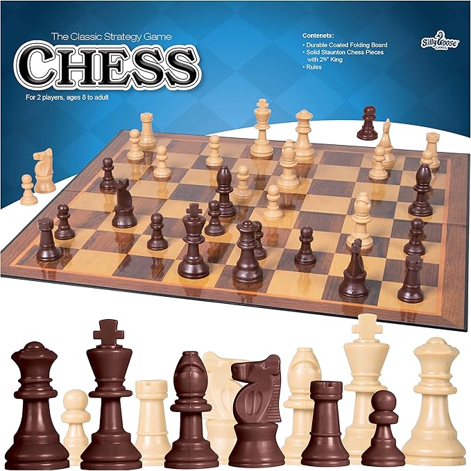 Silly Goose Chess Game, Cardboard Folding Chess Set with Plastic Chess Pieces, Board Games