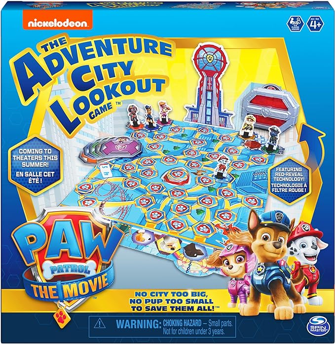 PAW Patrol: The Movie, Adventure City Lookout Tower Board Game Chase Marshall Skye Ryder Rubble, for Preschoolers, Kids, & Families Ages 4 and up