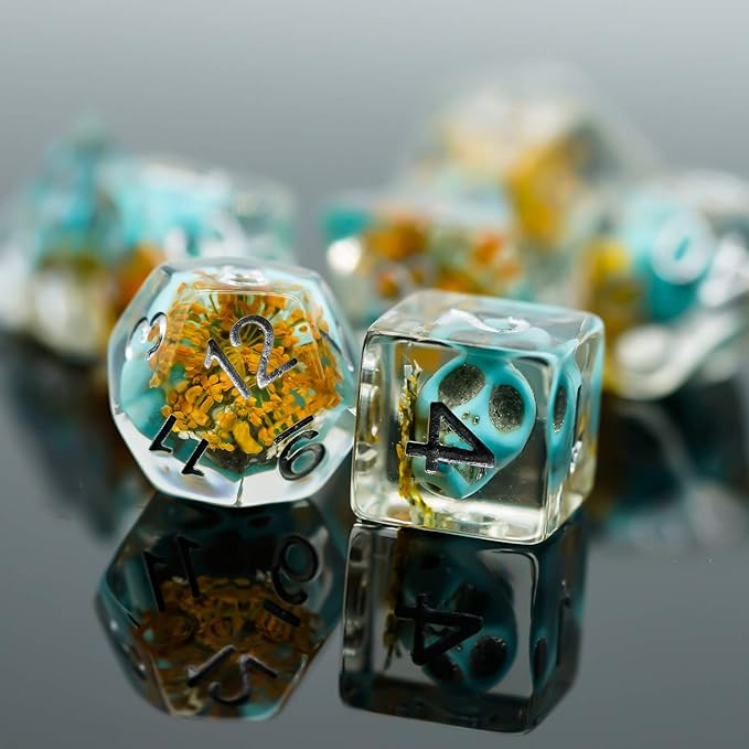 UDIXI 7PCS Polyhedral Dice Set, DND Dice Set Filled with Mushroom for Role Playing Games, D&D Dice for Dungeons and Dragons (Blue Flower)