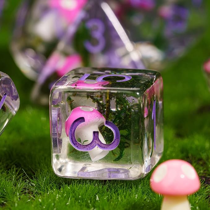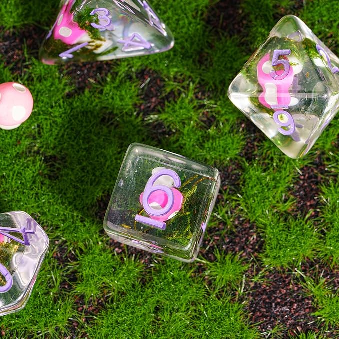 UDIXI 7PCS Polyhedral Dice DND, D&D Dice Set Filled with Mushroom and Seaweed for Role Playing Dice Games as DND RPG Table Games (Seaweed)