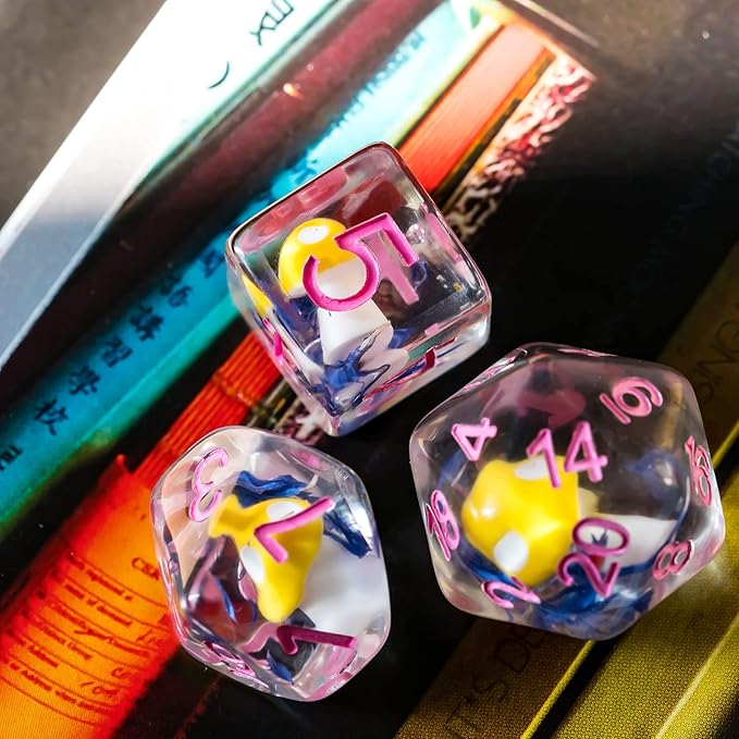 • Mushroom& Flower Insided:Each dnd dice is filled with a yellow mushroom and blue flower by random. When you get this set of d&d dice, it will make you feel like walking in a quiet and beautiful forest.