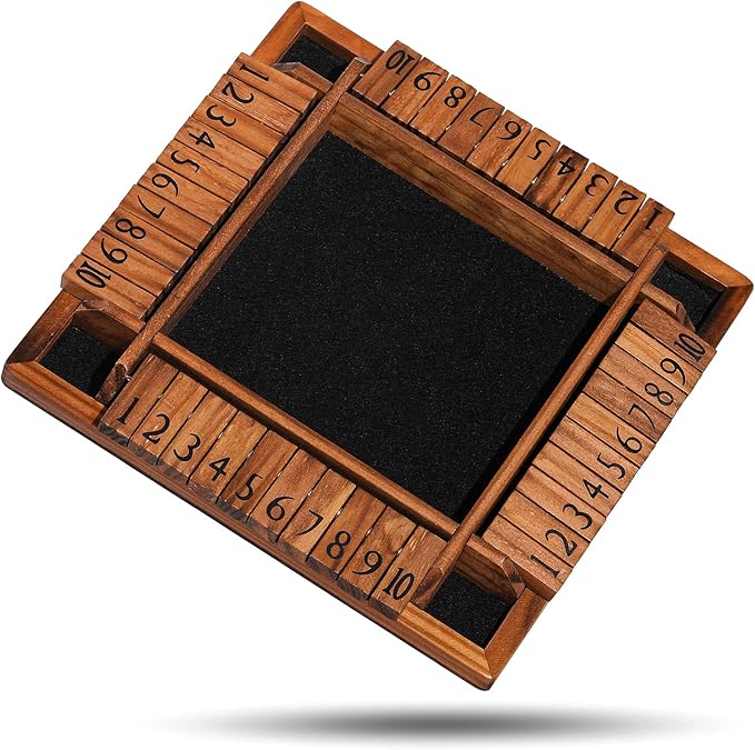 • 【TRADITIONAL PUB GAME】4-way Shut The Box has been a popular dice game for adults in American and European pubs. You can also make your own rules (such as bonus), adding your unique twist on the game. It’s not just for playing in pubs, either. Close The Box is an interesting dice game that will enrich your leisure time.