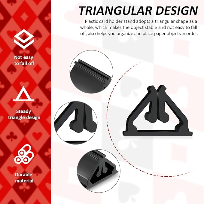 • Triangular design: plastic card holder stand adopts a triangular shape as a whole, which makes the object stable and not easy to fall off, also helps you organize and place paper objects in order