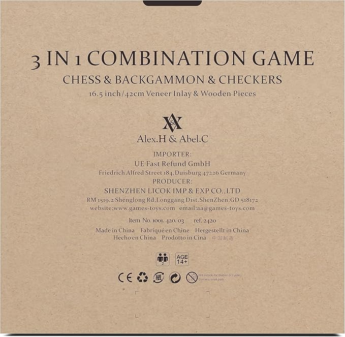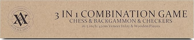 A&A 16.5 inch Deluxe 3 in 1 Wooden Backgammon Set-Chess Set with Checkers/ 3.0 inch King Height Staunton Chess Pieces