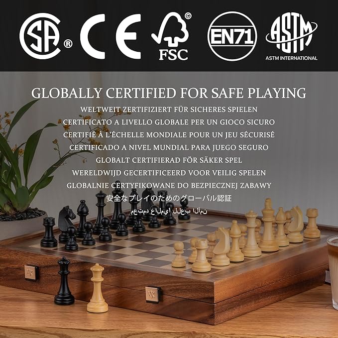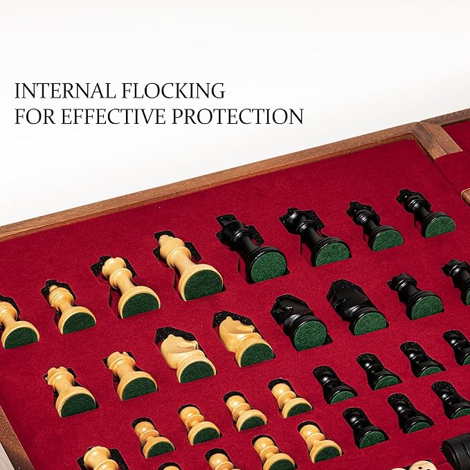 • Featuring a classic German look, our chess set never goes out of date. All pieces are handmade from natural wood and have a natural wood grain, while being non-odor and burrs free.