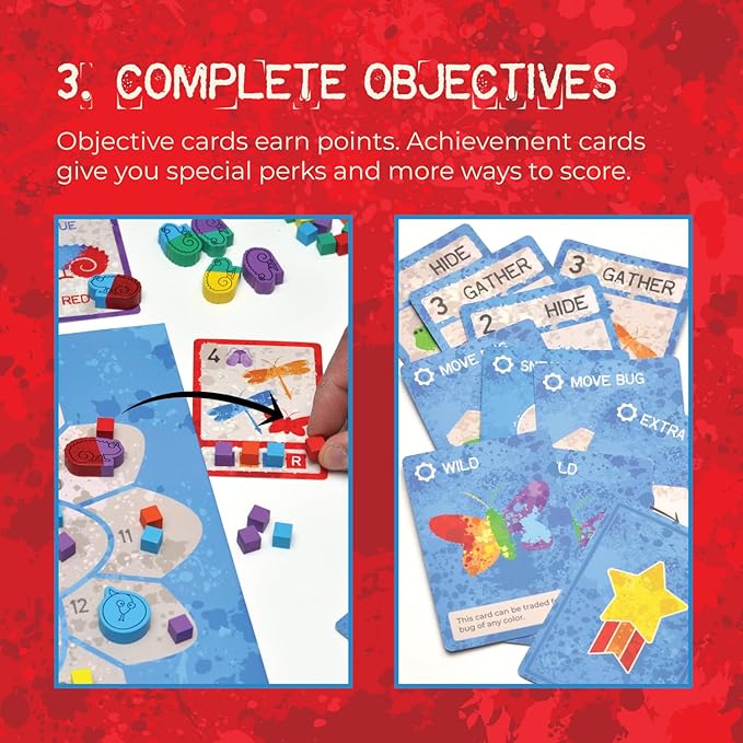 • SURPRISINGLY STRATEGIC: A unique and colorful gateway game for beginners and serious gamers alike, Life of a Chameleon incorporates a unique mechanism of changing your own chameleon's color to sneak up on bugs and complete objectives.