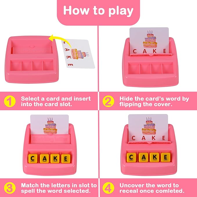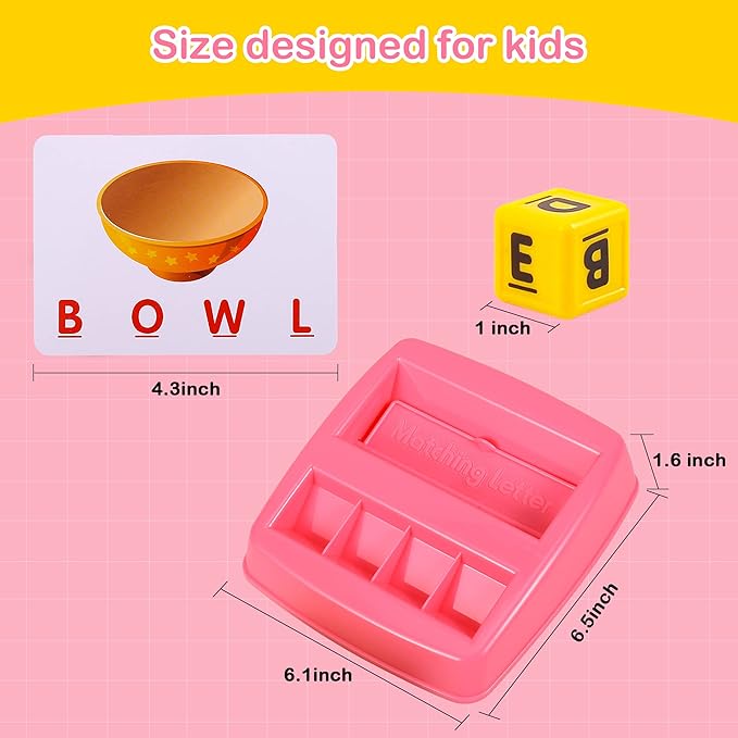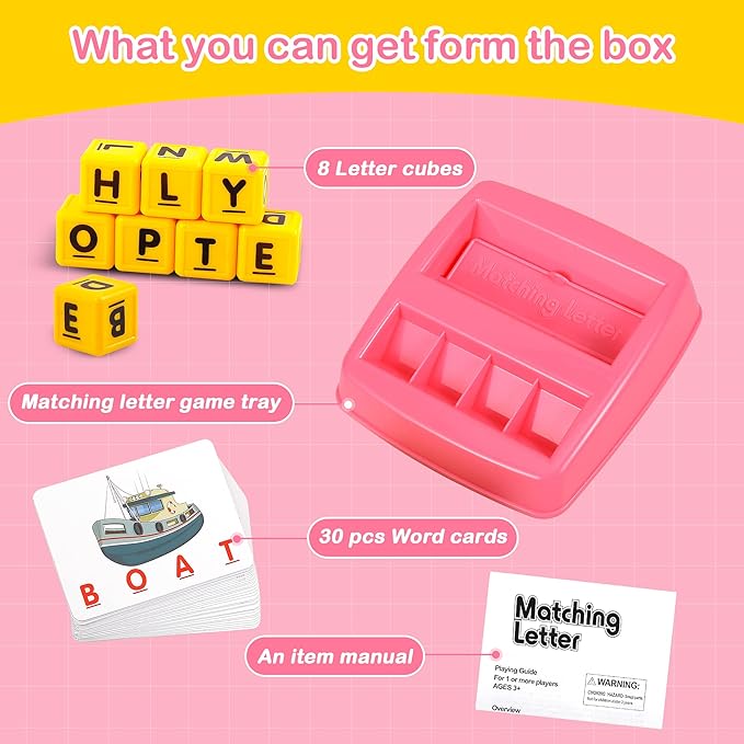 • Package Included: The matching letter game comes with 1 tray, 8 letter cubes, 30 cards(60 word cards with 3 and 4 letter words).