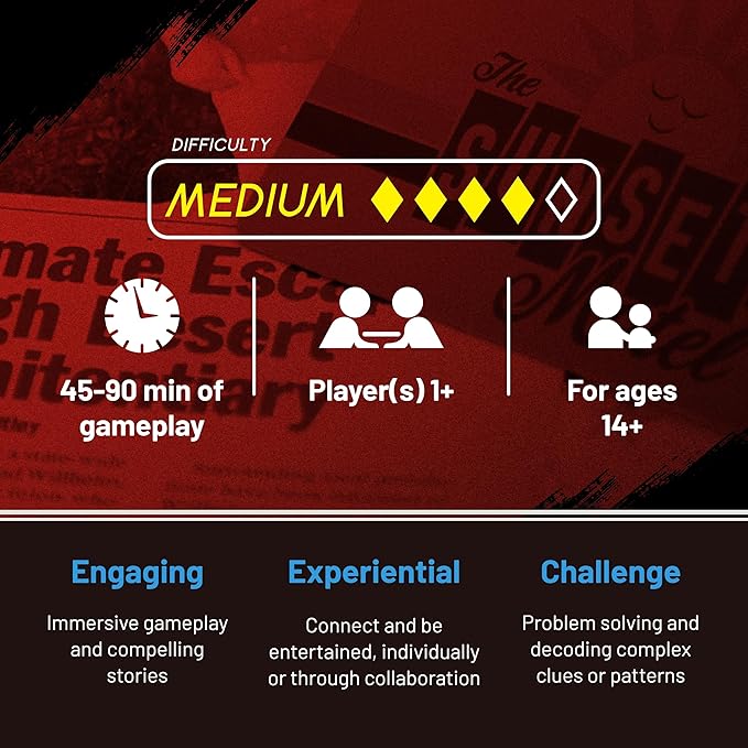 • For True Crime Fans: Hunt a Killer: Murder at the Motel has everything you need for a killer murder mystery party. This moderately challenging game is rated 4/5 for difficulty, for 1+ players, ages 14+.