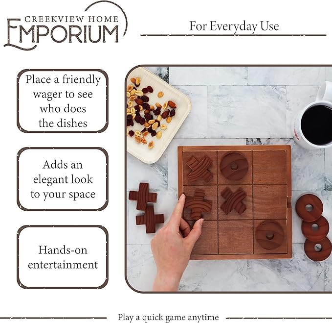 • [Unplug and Unwind]: Turn off the video games and smartphones and end the night with the Creekview Home Emporium Tabletop Tic Tac Toe Board Game; Large coffee table games provide hands-on entertainment without the paper and pencil