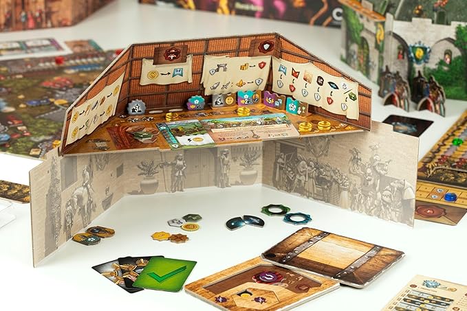 • Build your medieval city in a distinct fantasy realm (euro city building, tableau building).