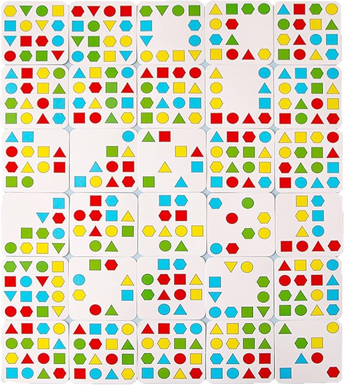 • 【SHAPE MATCHING BOARD GAME】Board size:14.8cm(5.82in) * 14.8cm(5.82in) ; Card size:7.3cm(2.87in) * 7.3cm(2.87in); The package contains a wooden base with hole of different shape, 16 wooden blocks and 30 cards, suitable for 1/2 players. For 2 players: kids take a card and build the blocks according to the reference. The one takes the shortest time wins! For 1 player: Choose the card randomly, complete color or shape matching by filling the puzzle. Convenient for gift giving or fun!