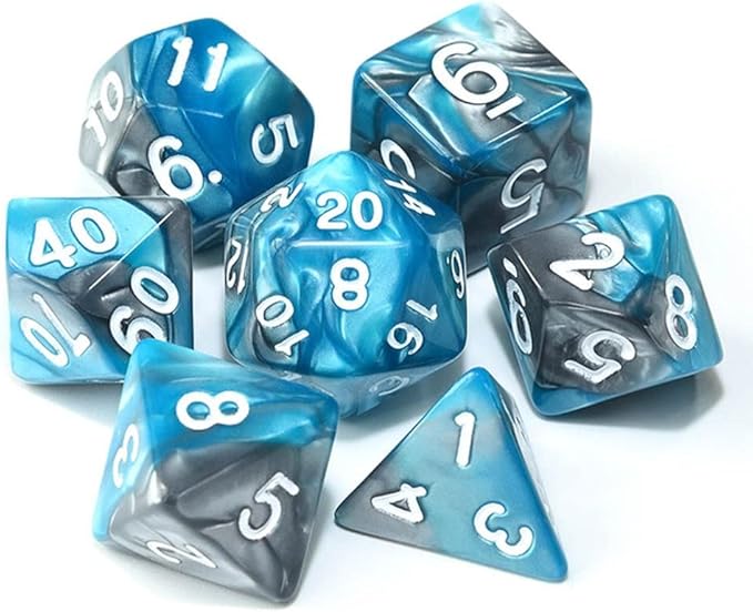7pcs/Set D4 D6 D8 D10 D12 D20 Dichromatic Polyhedral Dices for Beginner Role Playing Game D&D Dice Set Party Table Board Game Supplies,with A Silver Pouch(Bluegrey)
