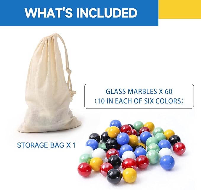 • Glass Marbles: The Chinese checker game set includes 60 0.6-inch diameter colorful glass marbles (ten in each of six colors)
