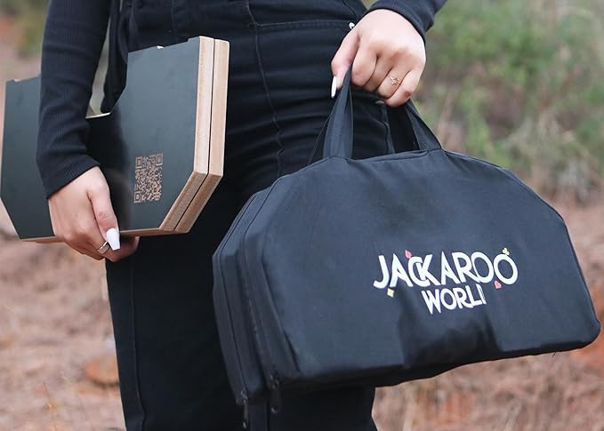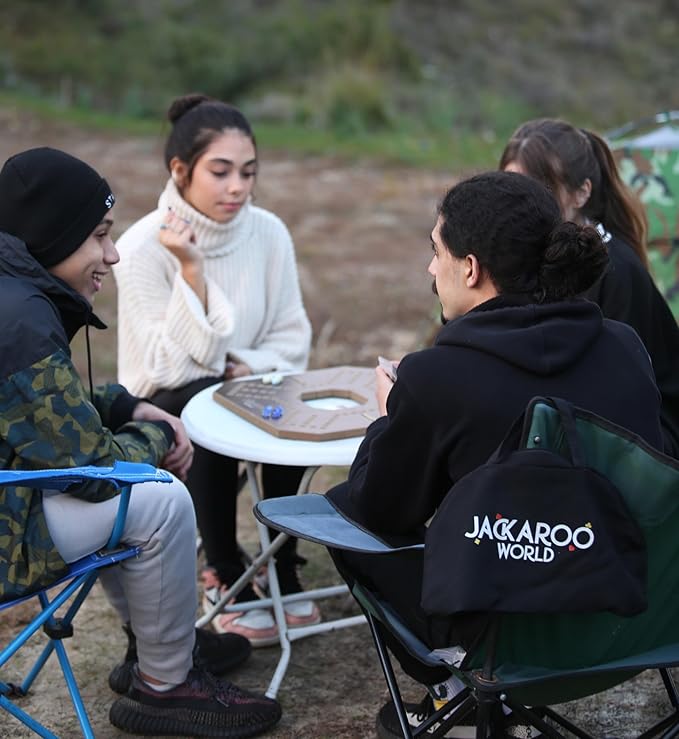 - Easy and Portable: The portability of Jackaroo Board Game is a result of its special foldable design. It is also compact and lightweight, ensuring it takes up minimal space and is easy to handle. It's a marble chase board game that can be effortlessly transported in its exclusive Jackaroo World bag, making it both easy to carry and visually appealing. This enhances the enjoyment of the Wahoo board game 4 player experience, allowing you to play this marbles and jokers game wherever you go.