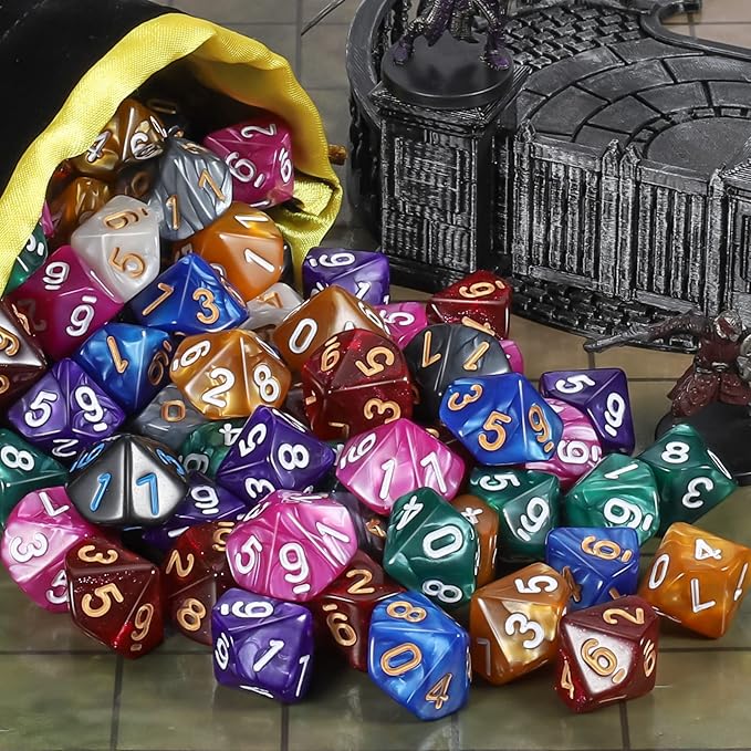CiaraQ DND Polyhedral Dice (100pcs) with A Dice Bag Compatible with Dungeons and Dragons DND RPG MTG Role Playing Table Games (D10 dice, 10 colors-100 pcs)
