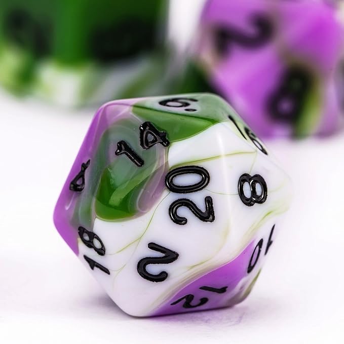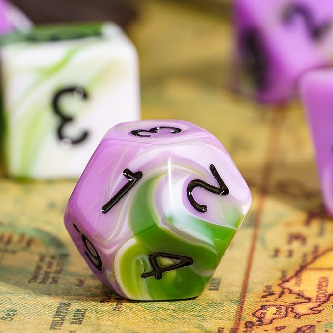 • Beautiful Color: Purple, green and white with pattern of marbles, looks bright and beautiful. Makes a Great Gift for a Friend/Father/Siblings,Fellow Player,or Dungeon Master.