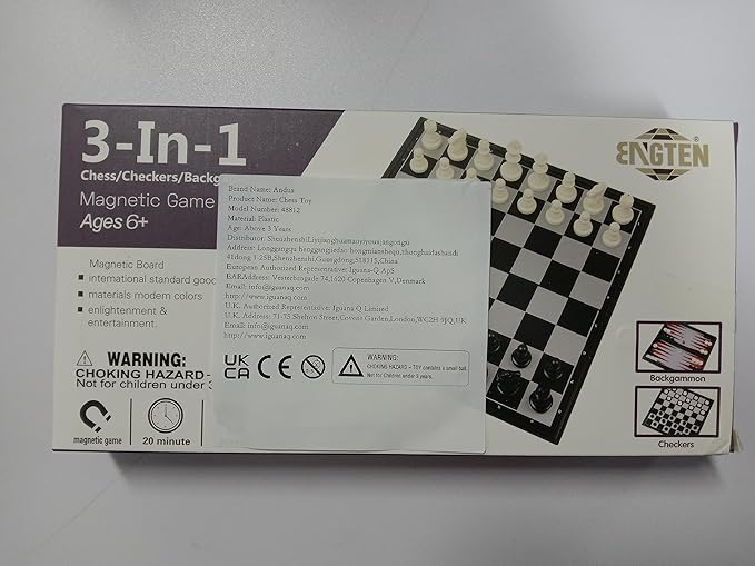 Andux Foldable Magnetic Three-in-One Board Game Set, Chess, Backgammon, Checkers (L, 32x32x2cm, 6+, 2 Players)