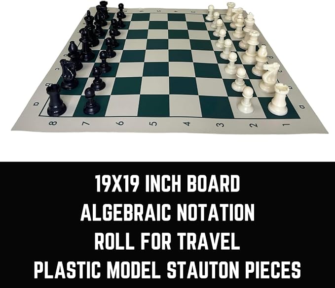 Tournament Chess Set, Portable and Professional Set with Travel Portable Plastic Tube Roll. Plastic Staunton Chess Pieces, Foldable Vinyl Chess Board. (Green, 19X19IN)