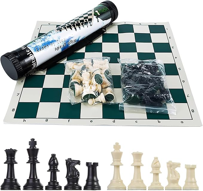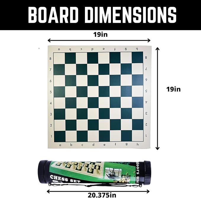 • Portable and Travel-Friendly: This chess set comes with a convenient and sturdy plastic tube roll for easy transport and storage. Take your chess games wherever you go, whether it's a tournament, outdoor event, or family trip.