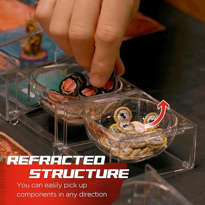 • [Concave Design Piece Holder] With a bowl-shaped indented structure, it is easy to draw tokens, meeples, dice, or board game components in all directions from the trays. You don't need to use your fingertip to pick the last one