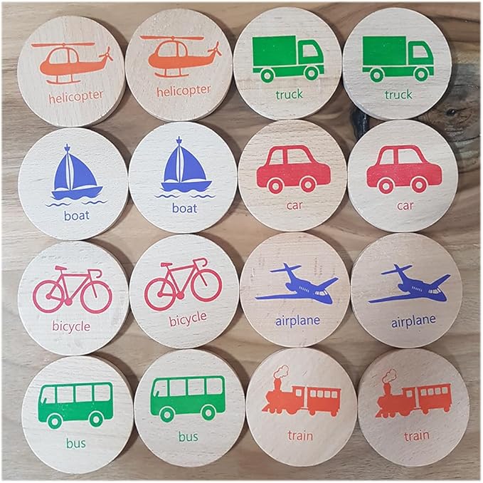 bee smart Wooden Memory Game - Matching Memory Game for Kids 3 and Up, 16Pcs | Educational Toy for Preschool Toddlers Board Games (Vehicles)