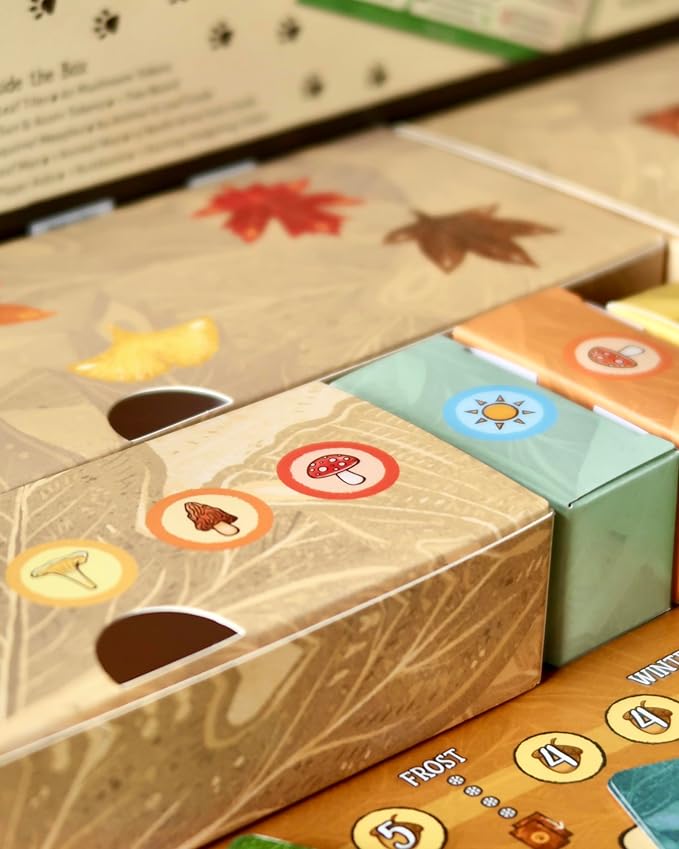 • STRATEGY GAME: Select leaf tiles from the central leaf board and place them on the forest floor. Earn extra points by collecting sets of animals growing mushroom rings on your leaves or advancing the season towards winter
