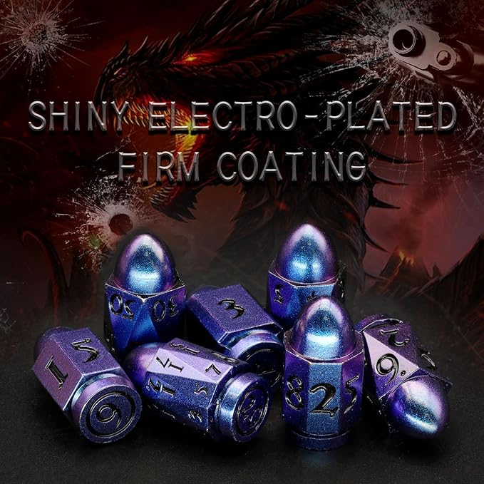 • COOL BULLET DICE: The bullet design of these dice will make them stand out on the gaming table, immersing players into the world of dnd dice games. This set includes 7 pcs, each marked with a number on the bottom, making them easy to distinguish quickly