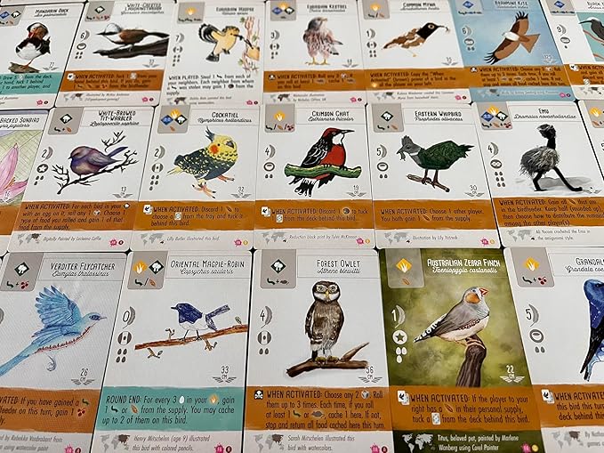• BEAUTIFUL SUBMITTED ARTWORK: This is a 255-card pack of bird cards with art made by Wingspan fans from around the world. Unique illustrations and creations out of watercolors, origami, digital art, crotchet, pastels, colored pencil, ahnd embroidery, acyrlic paint, and even a board game pieces collage!