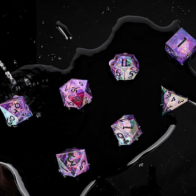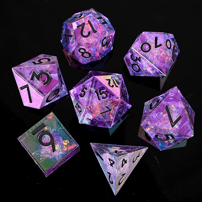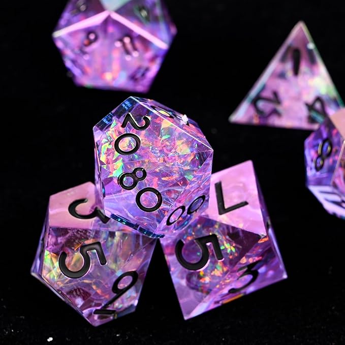 Electroplated Resin Dice Set, Resin Edge Sharp for Dungeons & Dragons RPG, MTG Board Games with Gift Box (Electroplating Purple Color)