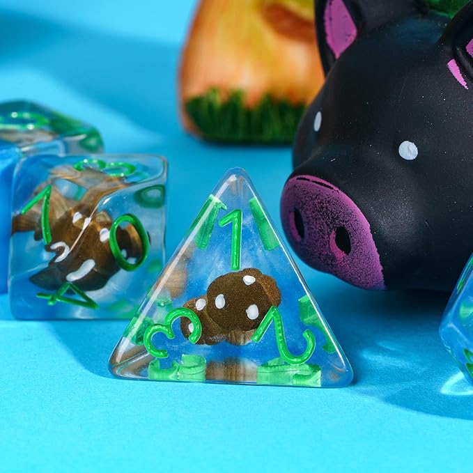 • Mushrooms DND Dice Set : Very cute little mushrooms in each dice make the dice full of life and energy. You can feel the breath of spring when you see them.