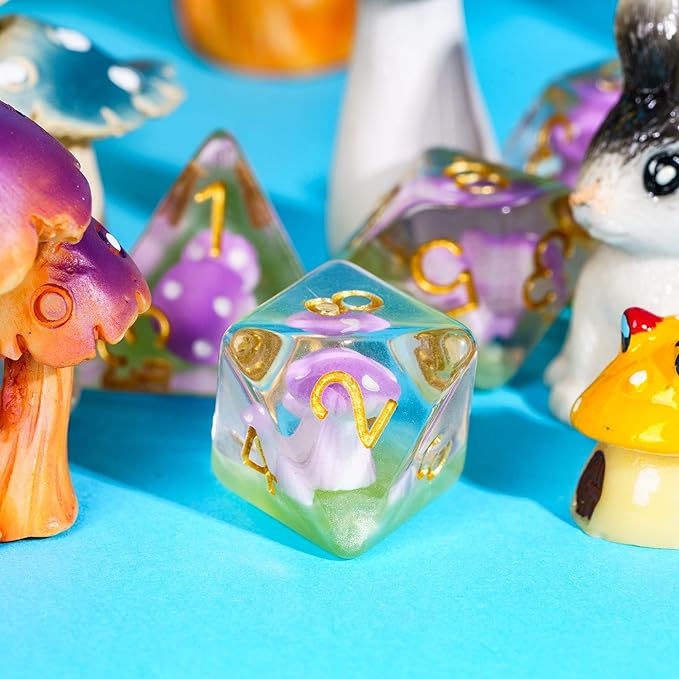 • Mushrooms DND Dice Set : Very cute little mushrooms in each dice make the dice full of life and energy. You can feel the breath of spring when you see them.