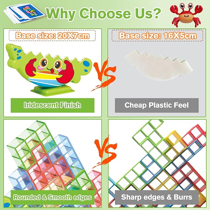 • 【Versatile Gameplay Options】 Play solo to build towers and balance skills, or challenge friends in a competitive mode using optional cards. Ideal for both independent and interactive play, promoting social skills and turn-taking.